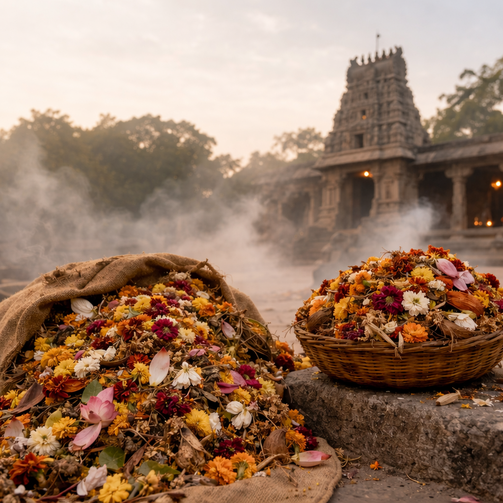 Our incense is handcrafted from upcycled temple flowers, turning urban waste into aromatic wonder. We’ve stripped away the toxins—no carbon, no chemicals, just the pure essence of natural oils. With every stick you light, you’re not just clearing the air in your home; you’re clearing the streets of your city and supporting a greater cause.
